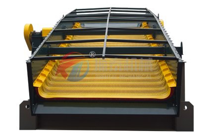 2、將香蕉篩和弛張篩的各自優點有機地融合在一起。入料端物料速度快、料層薄,大量物料透篩,處理量高。排料端篩面傾角低,物料速度慢,這得以將剩余的篩下物徹底透篩,達到非常高的篩分效率。