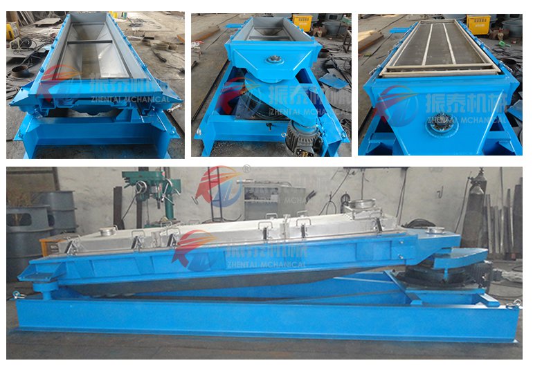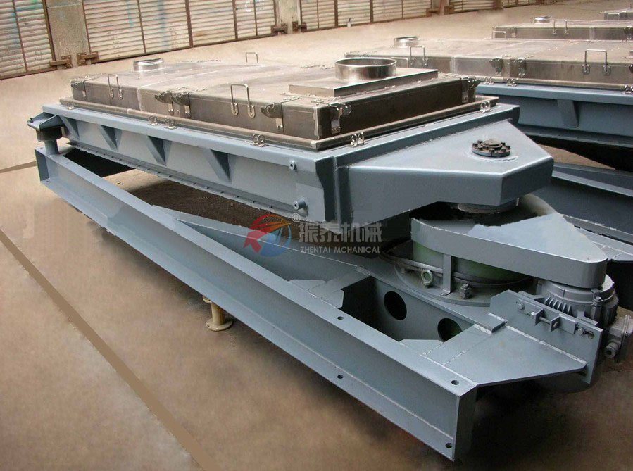 設(shè)備的篩箱在慣性力的作用下作前后往復(fù)運(yùn)動(dòng),并帶動(dòng)篩面做周期性搖動(dòng),迫使篩面上的物料隨篩箱一同做定向跳躍式運(yùn)動(dòng),小于篩面孔徑的物料通過(guò)篩框落到下層,稱為篩下物,大于篩面孔徑的物料經(jīng)連續(xù)翻滾跳躍運(yùn)動(dòng)后從排料口排出,最后完成篩分作業(yè)。