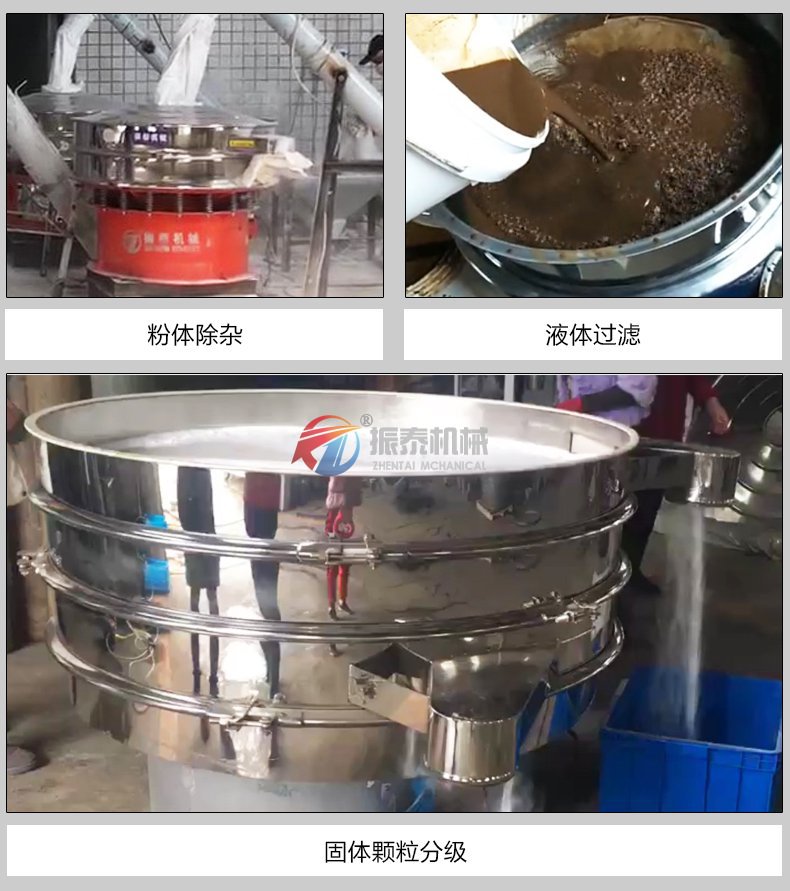 振泰機械生產的不銹鋼振動篩利用振動電機作為激振源,使黃豆在篩面上被拋起落下,通過不同層數的篩網目數產生數種規格的篩上物和篩下物,分別從各自的出口排出,以達到黃豆篩分除雜的目的。
